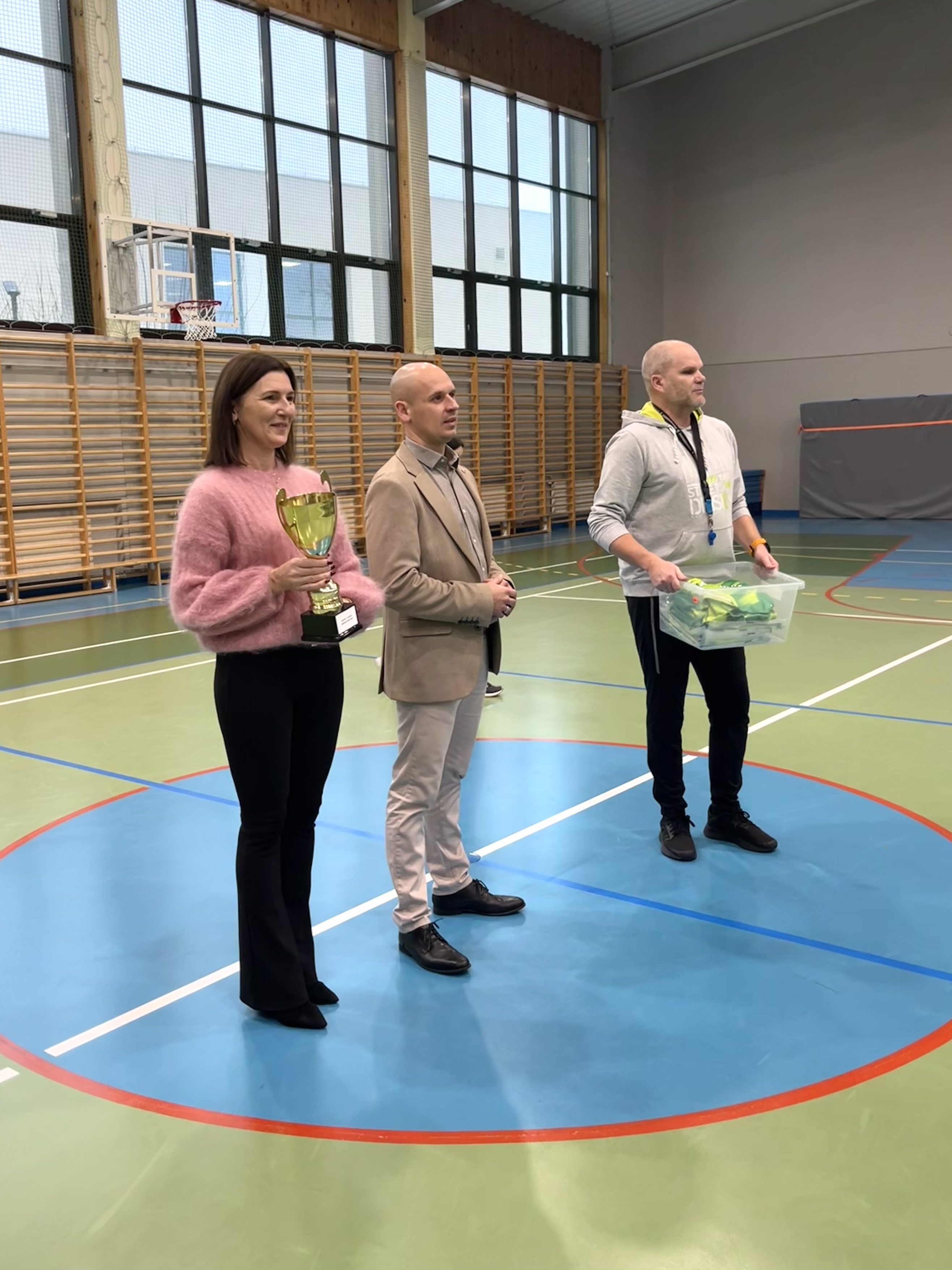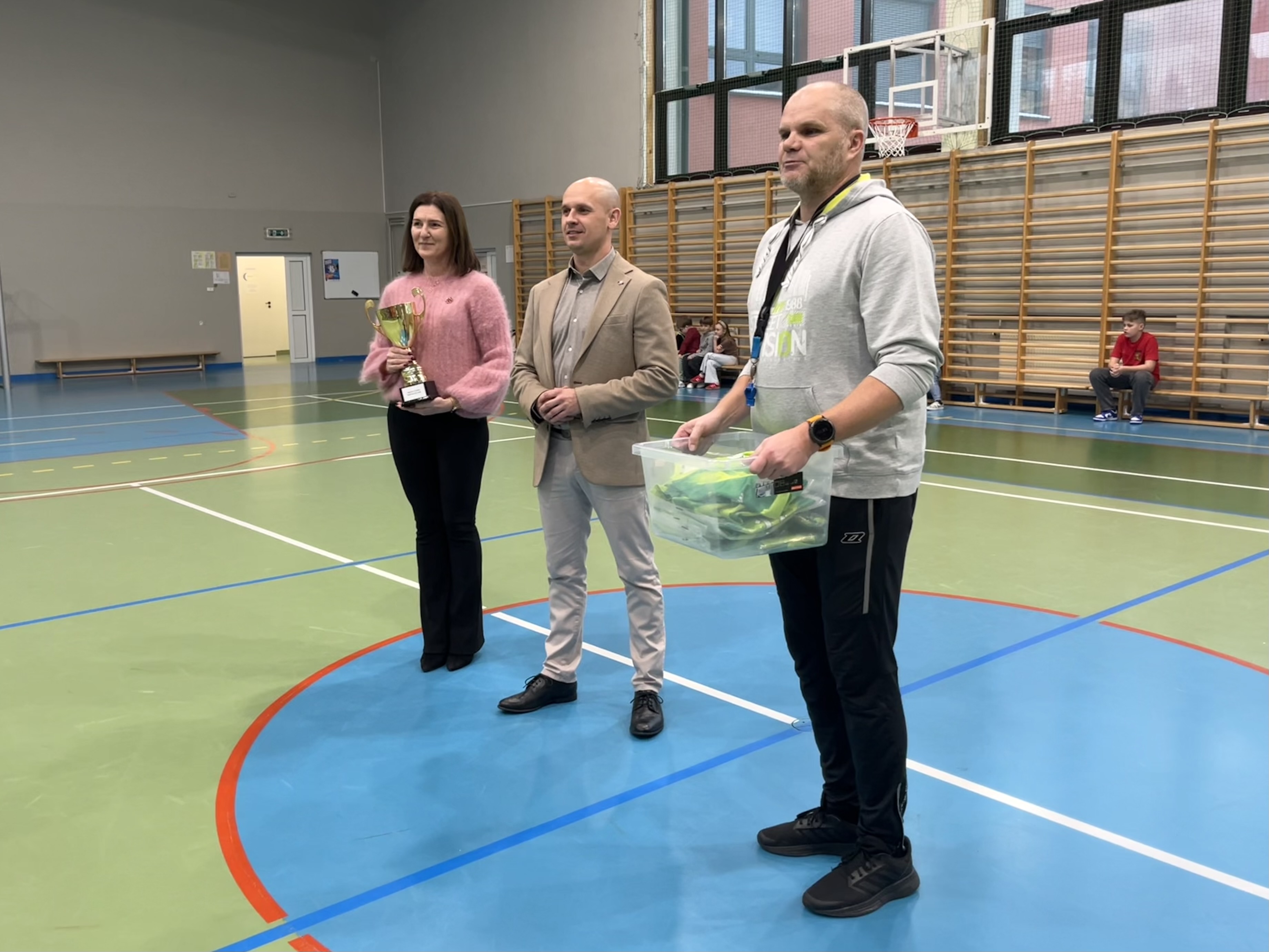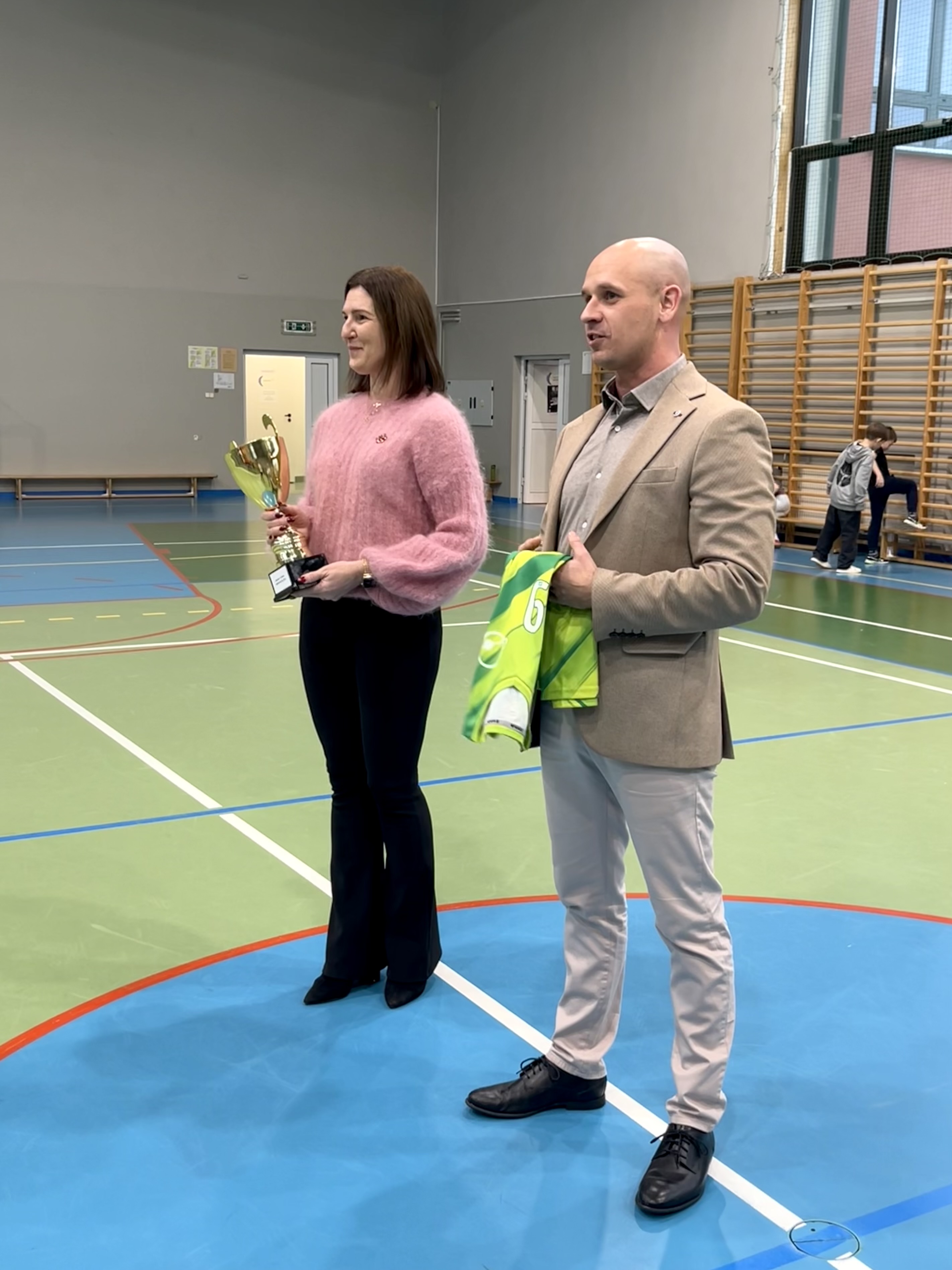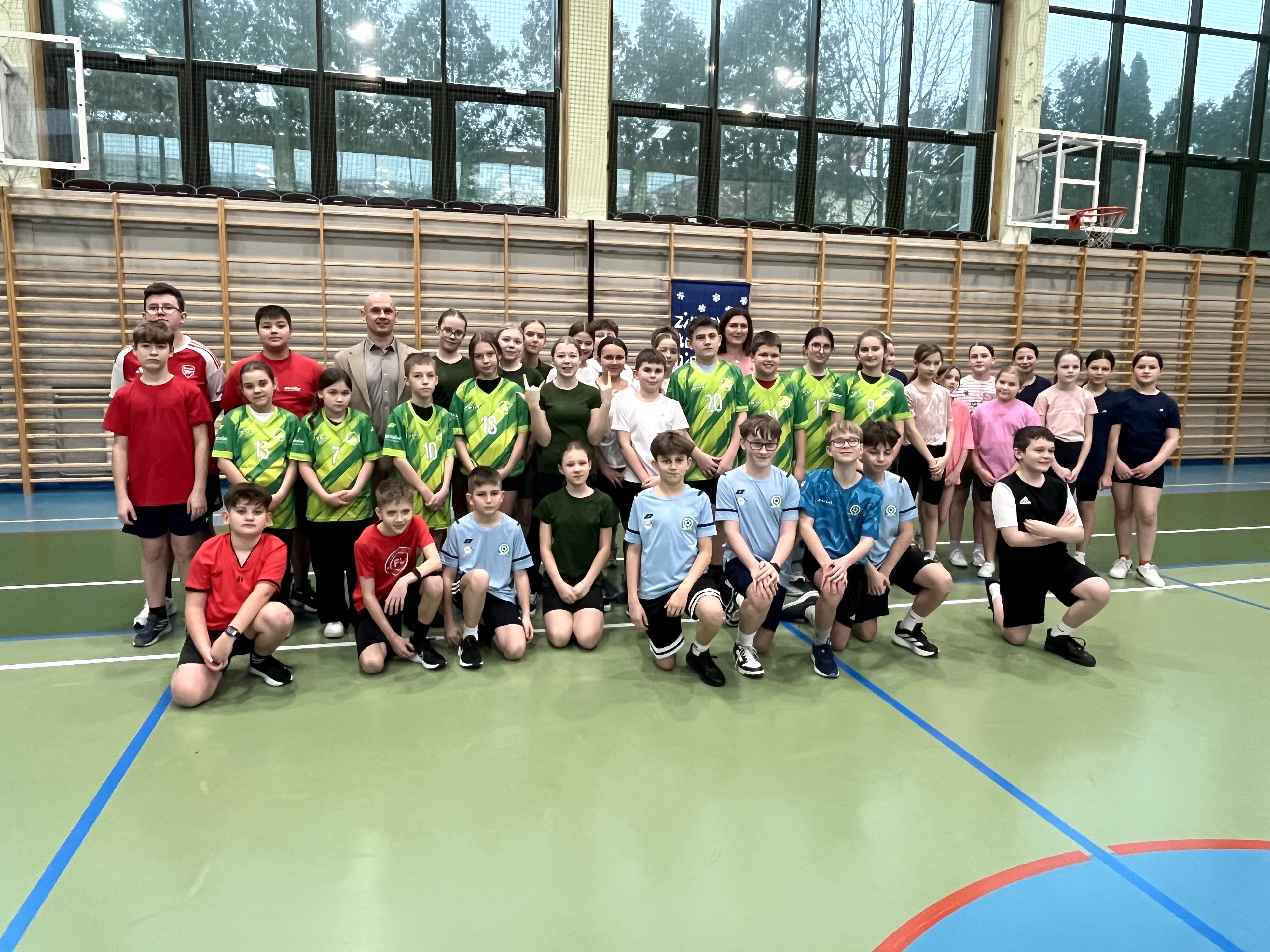 Przekazanie strojów odbyło się podczas oficjalnego rozpoczęcia zimowego turnieju mini piłki ręcznej, który otworzyła dyrektor szkoły, Pani Agnieszka Kowalczyk.