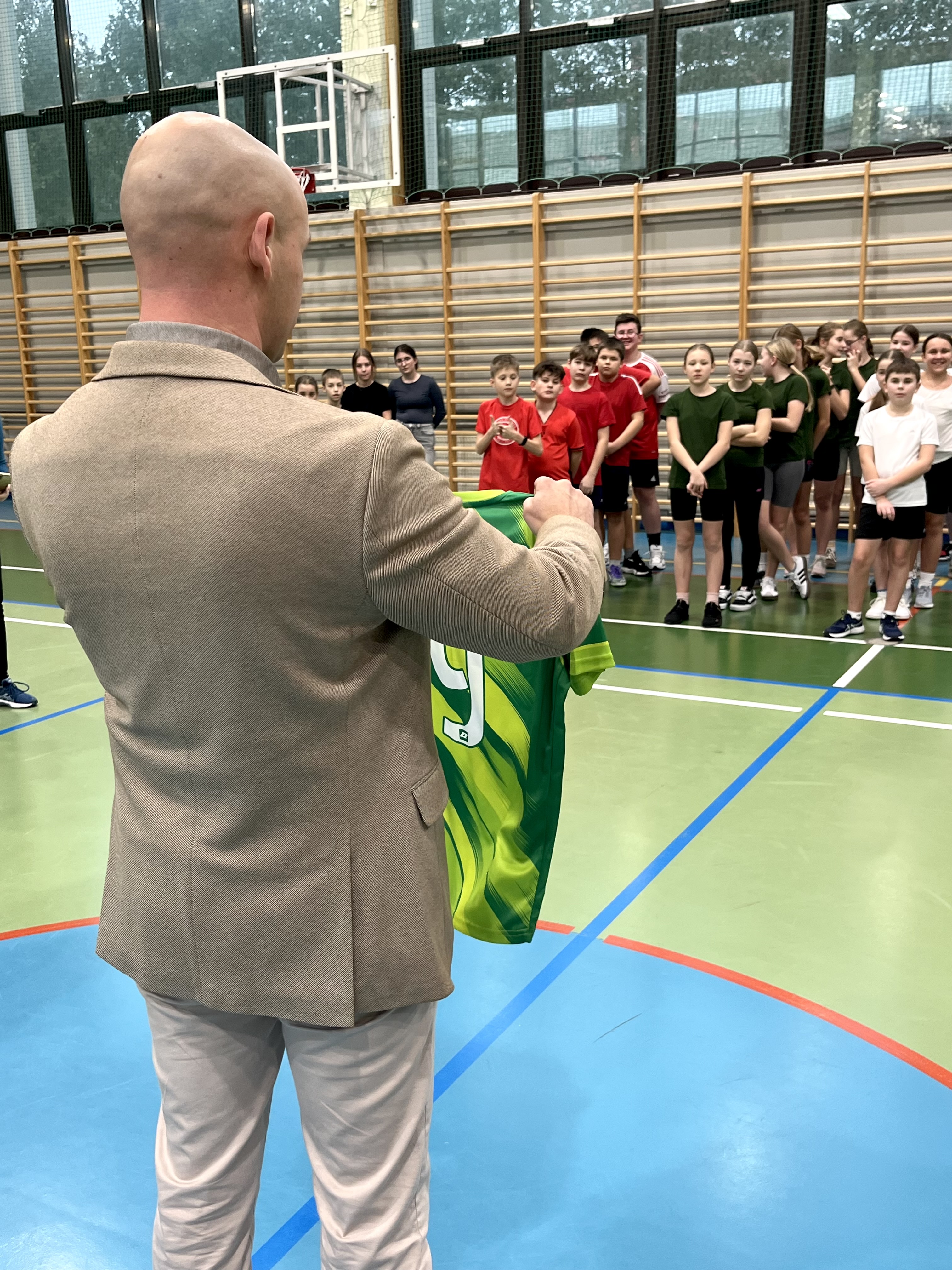 Wiceprezes Fundacji pogratulował uczniom sportowych talentów i życzył im, aby z dumą nosili nowe koszulki podczas kolejnych sportowych turniejów.