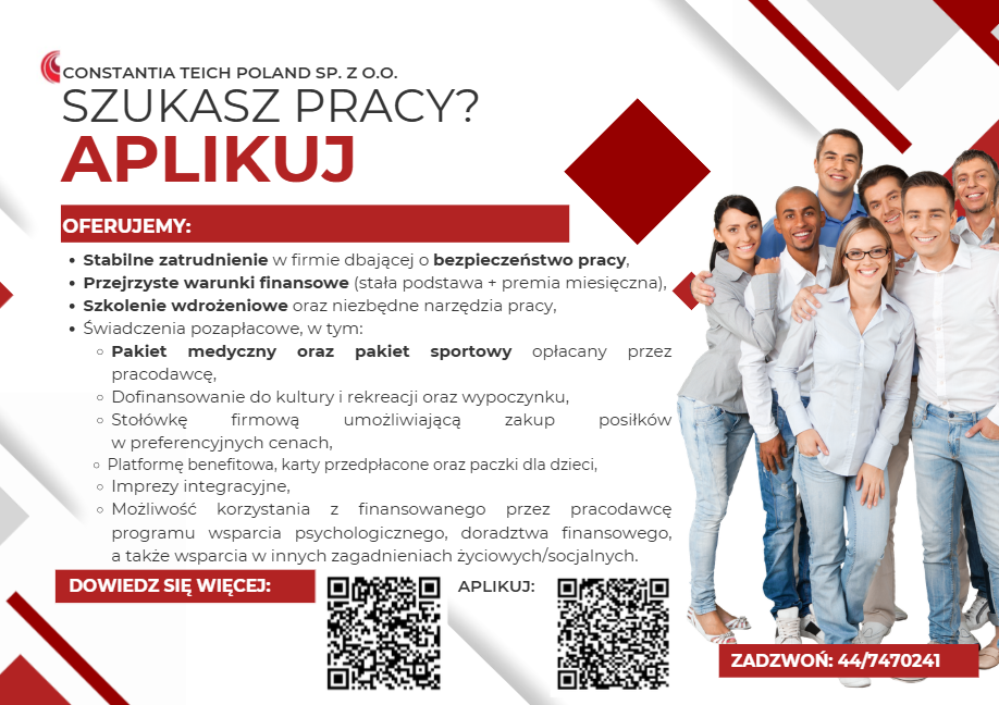 Zainteresowanych prosimy o kontakt z firmą Constantia Teich Poland Sp. z o.o. mailowo na adres: praca.ctp@cflex.com