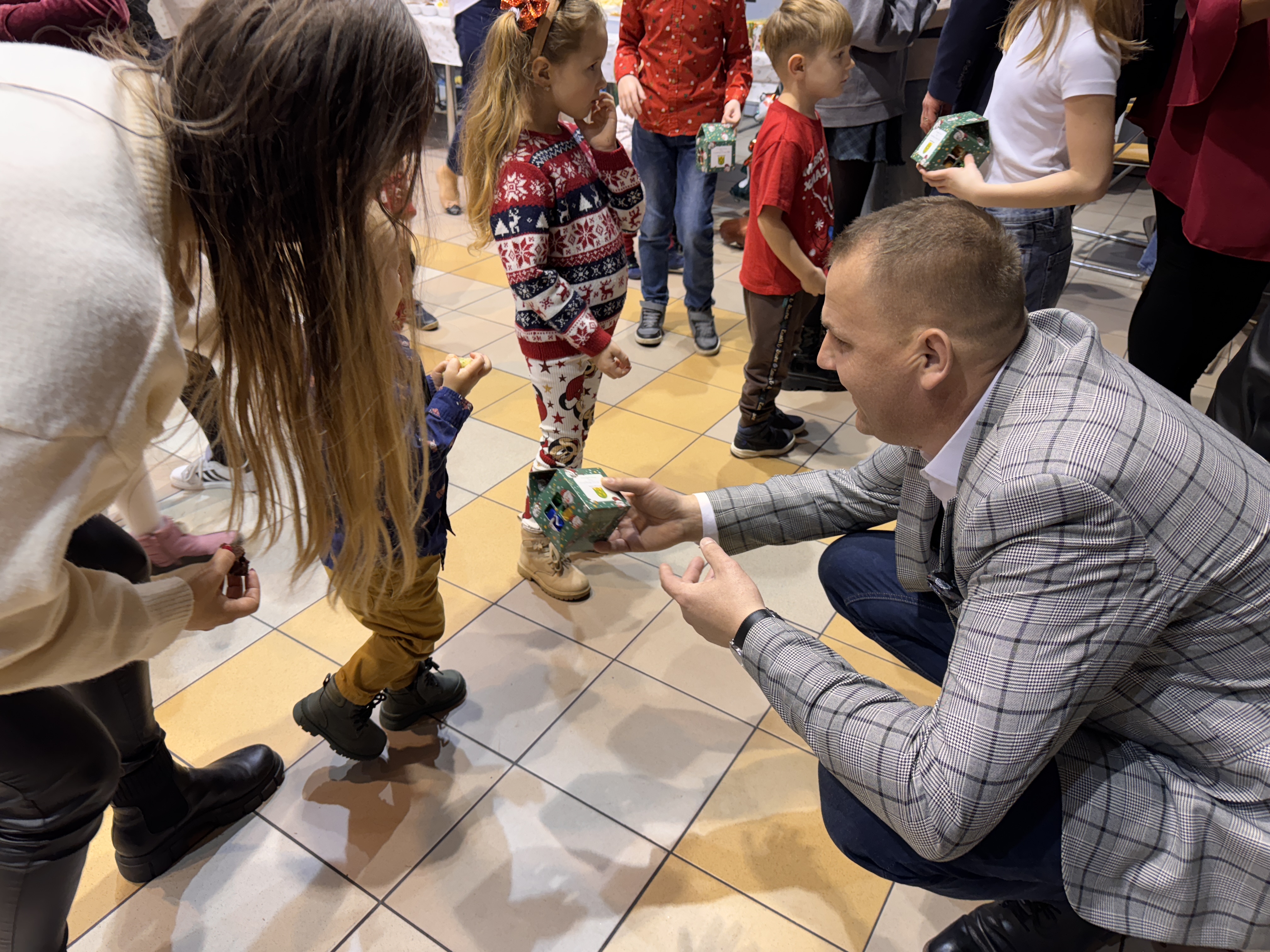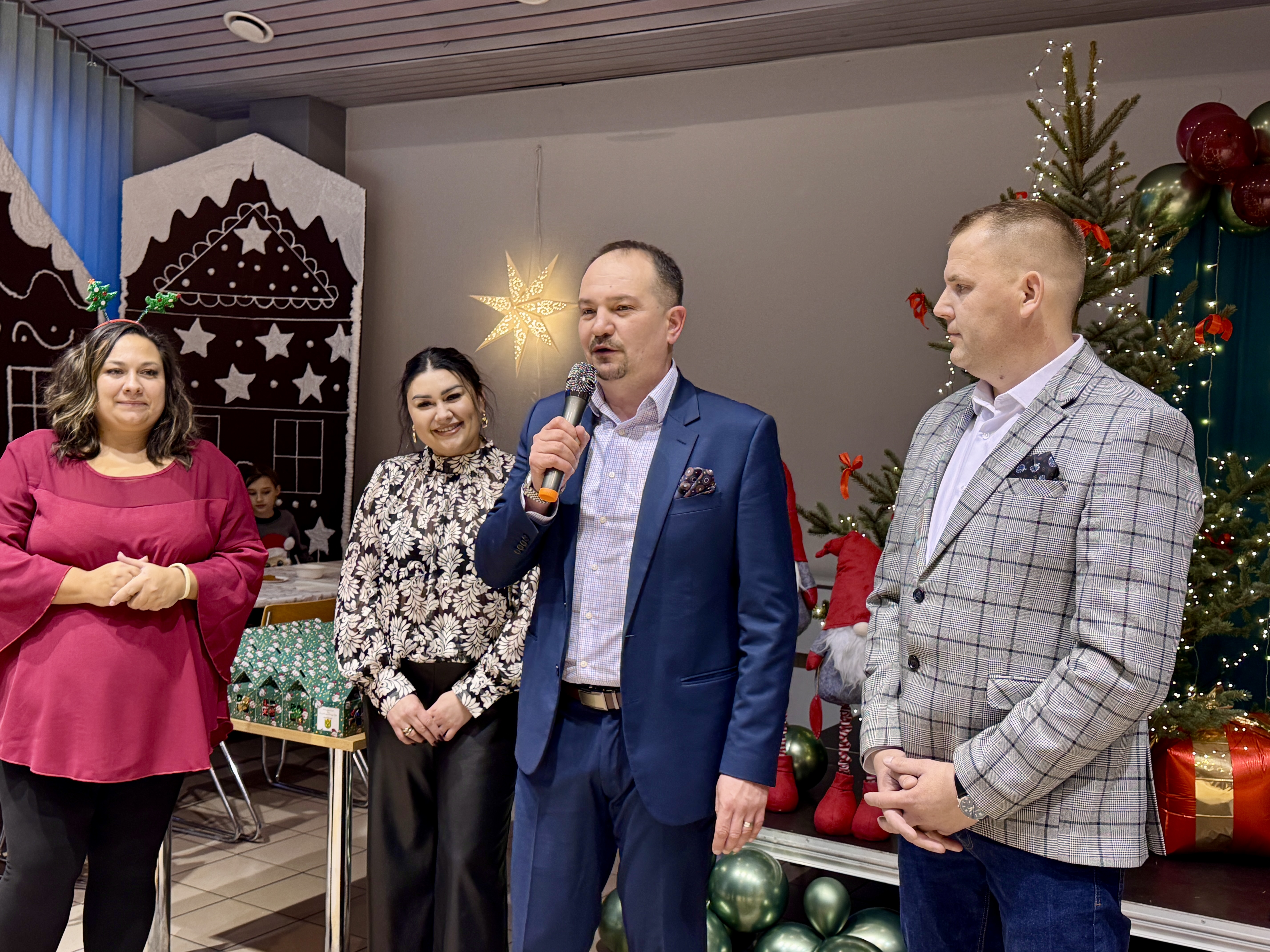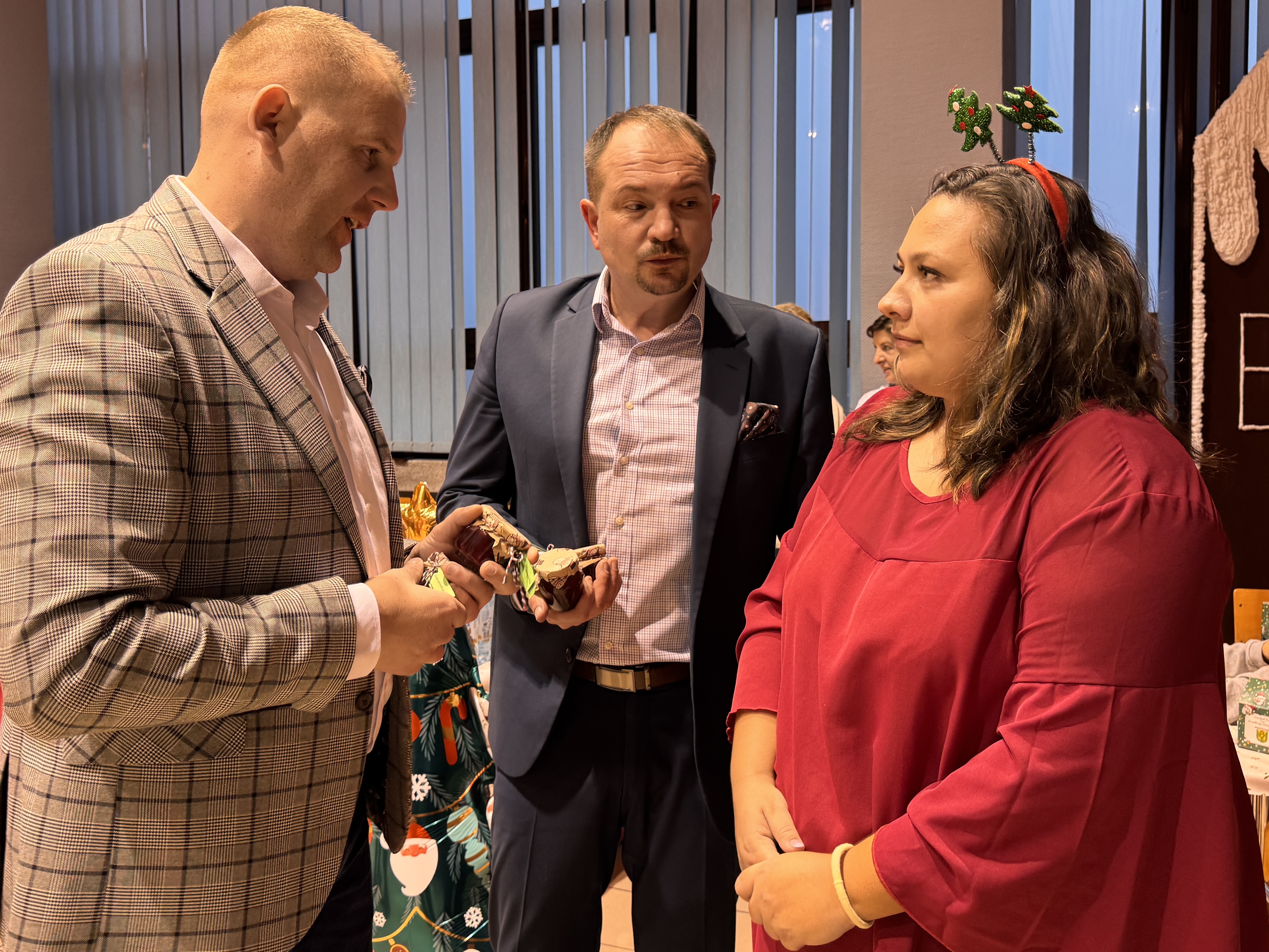 Świąteczne upominki przekazali członek zarządu Fundacji Rozwoju Gminy Kleszczów Bogdan Lankamer, Zastępca Wójta Gminy Kleszczów Ewelina Nocoń oraz Przewodniczący Rady Gminy Kleszczów Michał Rejniak.